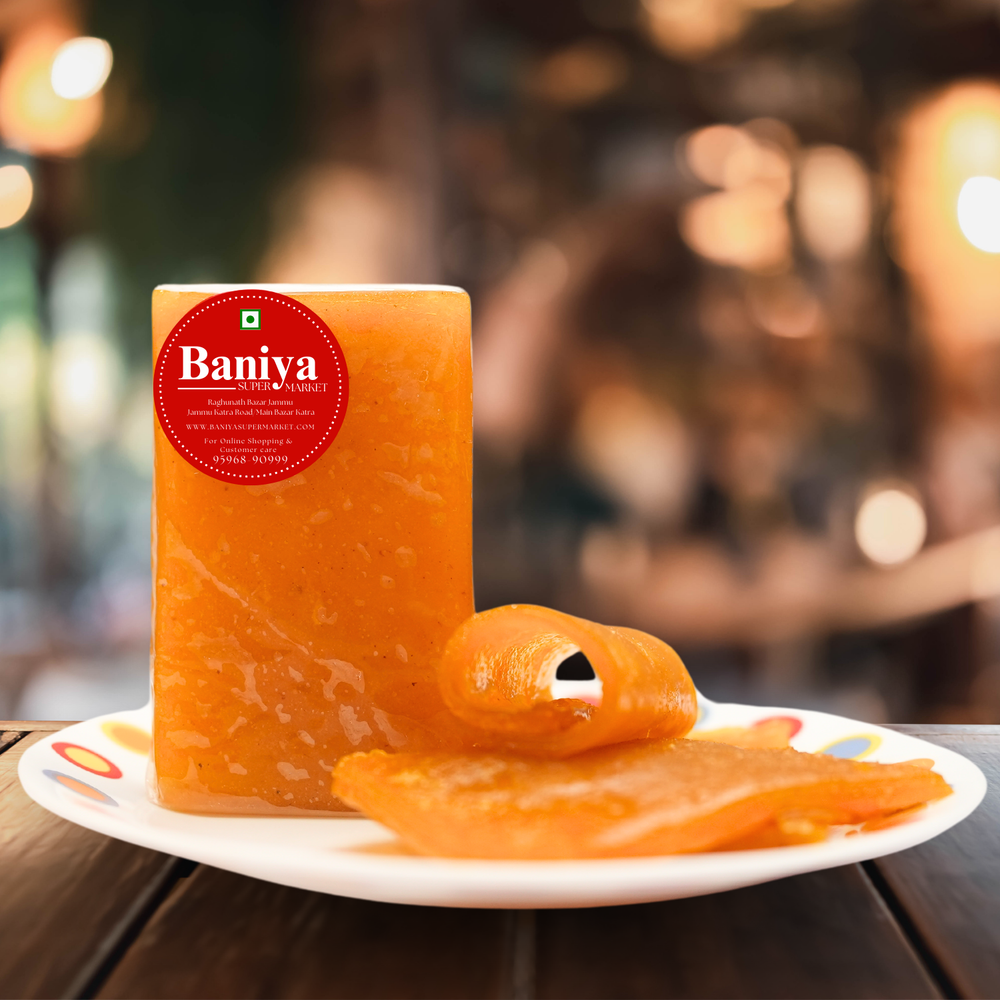 Indulge in the rich, tangy goodness of Aam Papad, a delightful treat made from raw and sun-dried mangoes. Our Aam Papad is a celebration of traditional Indian flavors, offering a burst of authentic mango goodness in every bite. Elevate your snacking routine with the irresistible taste of Aam Papad—where tradition meets indulgence.